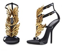 THESE GOLD AND BLACK LEAF INSPIRED HEELS WILL ADD THE PERFECT ACCENT TO ANY ENSEMBLE.